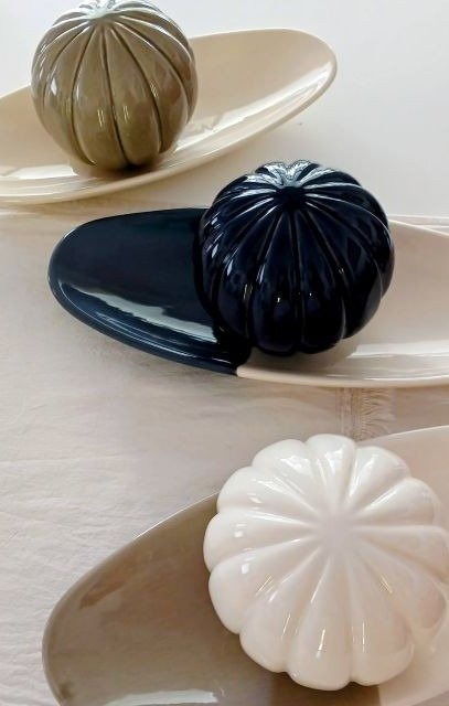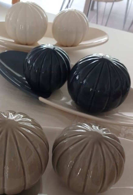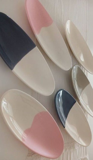 Centros de mesa esmaltados con distintas combinaciones de colores para
