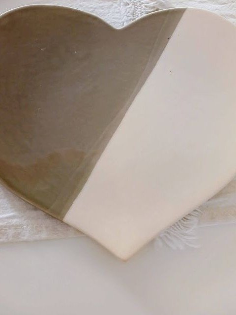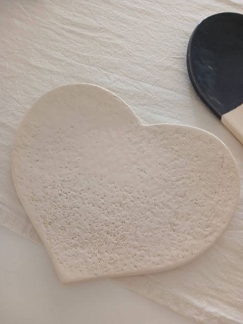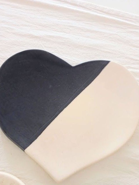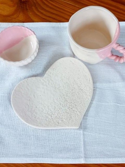 Platos de corazón, esmaltados en distintos diseños para usarlos como quieras.
