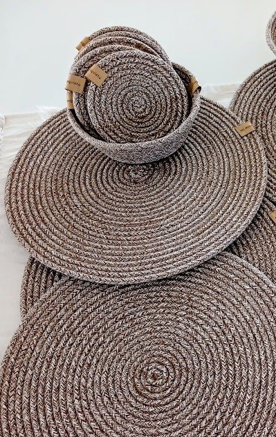 Platos de sitio - individuales realizados en soga trenzada premium de 7mm, de 33 cm de diámetro.